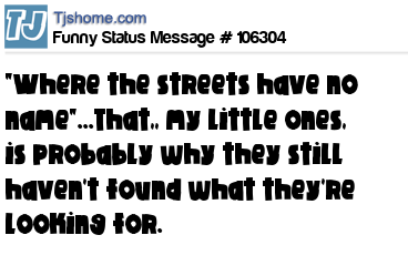 X "Where the streets have no name"...That,, my little ones, is probably why they still haven't found what they're looking for.