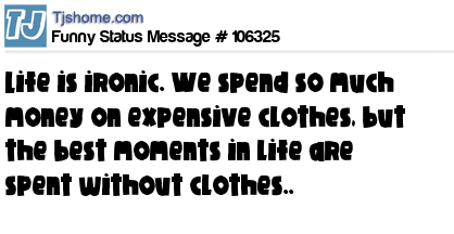 X is Life is ironic. We spend so much money on expensive clothes, but the best moments in life are spent without clothes..