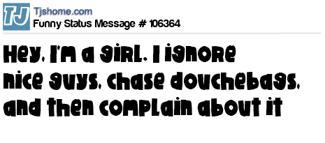 X is Hey, I'm a girl. I ignore nice guys, chase douchebags, and then complain about it