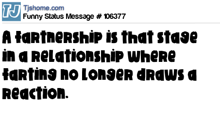 X A fartnership is that stage in a relationship where farting no longer draws a reaction.
