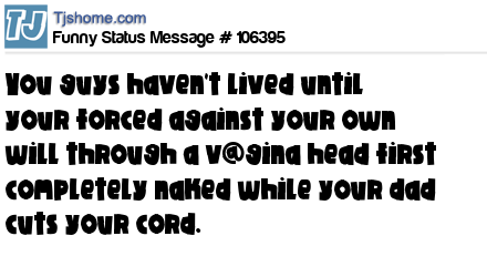 X says You guys haven't lived until your forced against your own will through a v@gina head first completely naked while your dad cuts your cord.