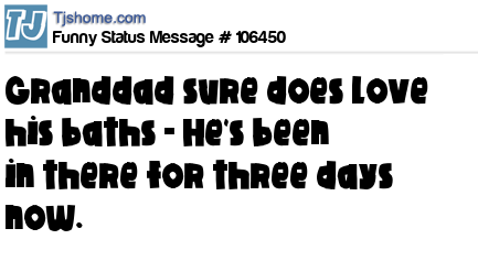 - # 98308 I looked in the bathroom mirror this morning and saw my Dad looking back at me. We should stop taking baths together.