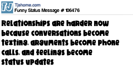 X is Relationships are harder now because conversations become texting, arguments become phone calls, and feelings become status updates