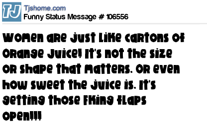 X is Women are just like cartons of Orange Juice! It's not the size or shape that matters. Or even how sweet the juice is. It's getting those Fking flaps open!!!