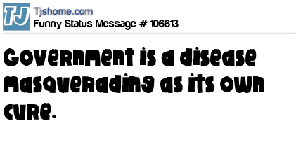 - # 179186 Government should give us all free healthcare, it is our right.. This same government that has had a cure for cancer since the 60's, and still keeps it outlawed.