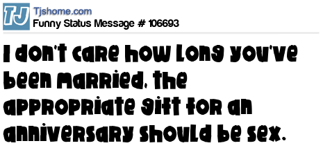 X says I don't care how long you've been married, the appropriate gift for an anniversary should be sex.