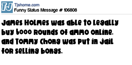 X says James Holmes was able to legally buy 6000 rounds of ammo online, and Tommy Chong was put in jail for selling bongs.