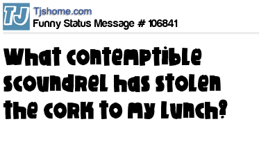 X What contemptible scoundrel has stolen the cork to my lunch?