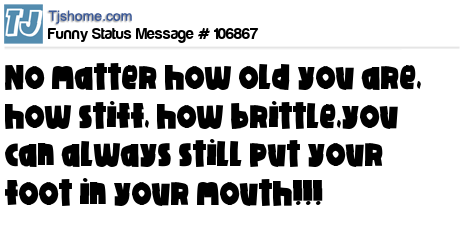 X is No matter how old you are, how stiff, how brittle,you can always still put your foot in your mouth!!!