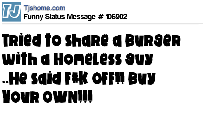 X Tried to share a Burger with a Homeless guy ..He said F#K OFF!! Buy Your OWN!!!