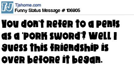X says You don't refer to a pen!s as a 'pork sword'? Well I guess this friendship is over before it began.