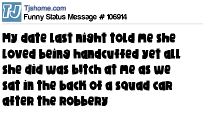 X says My date last night told me she loved being handcuffed yet all she did was b!tch at me as we sat in the back of a squad car after the robbery