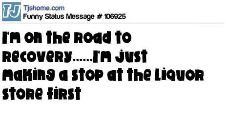X says I'm on the road to recovery......I'm just making a stop at the liquor store first