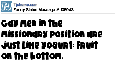 X Gay men in the missionary position are just like yogurt: Fruit on the bottom.