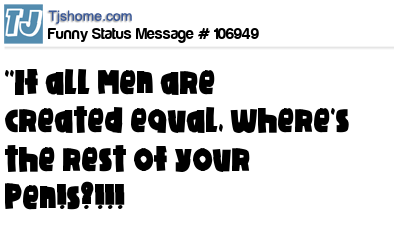 X is ''If all Men are created equal, where's the rest of your Pen!s?!!!