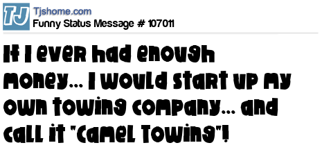 X says If I ever had enough money... I would start up my own towing company... and call it "Camel Towing"!