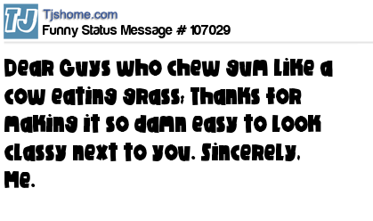 X says Dear Guys who chew gum like a cow eating grass; Thanks for making it so damn easy to look classy next to you. Sincerely, Me.