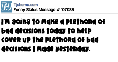 X I'm going to make a plethora of bad decisions today to help cover up the plethora of bad decisions I made yesterday.