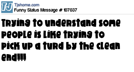 - # 109105 Trying to understand some people,,, Is like trying to pick up a turd by the clean end...