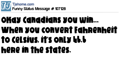 X says Okay Canadians you win... When you convert Fahrenheit to Celsius, it's only 46.6 here in the states.