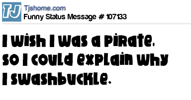 X says I wish I was a pirate, so I could explain why I swashbuckle.