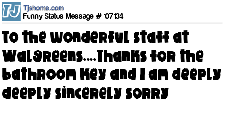 X is To the wonderful staff at Walgreens....Thanks for the bathroom key and I am deeply deeply sincerely sorry