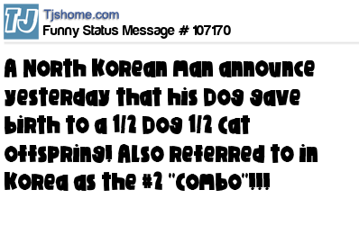 X is A North Korean man announce yesterday that his Dog gave birth to a 1/2 Dog 1/2 Cat offspring! Also referred to in Korea as the #2 ''Combo''!!!