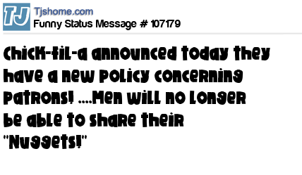 X is Chick-fil-a announced today they have a new policy concerning patrons! ....Men will no longer be able to share their ''Nuggets!''