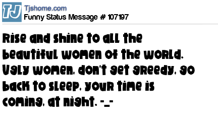 - # 103777 Rise and shine all the beautiful women of the world. Ugly women, go back to sleep, your time is coming, at night.