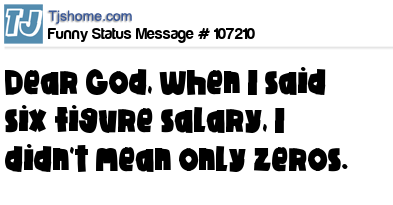 - # 137114 Dear God, when I said I wanted a salary with six zeros in it,,, I didn't mean only zeros.