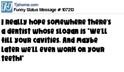 X says I really hope somewhere there's a dentist whose slogan is "We'll fill your cavities. And maybe later we'll even work on your teeth!"