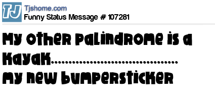 X  My other palindrome is a kayak.................................... my new bumpersticker