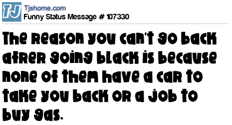 X is The reason you can't go back afrer going black is because none of them have a car to take you back or a job to buy gas.