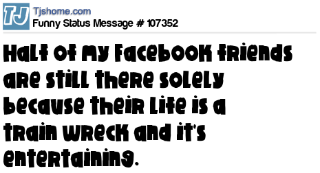 X is Half of my Facebook friends are still there solely because their life is a train wreck and it's entertaining.