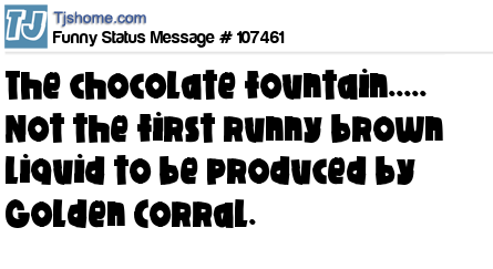 - # 96337 Our local Golden Corral "Chocolate Waterfall" was shut down tonight because the drain was clogged up with band aids again...FTW