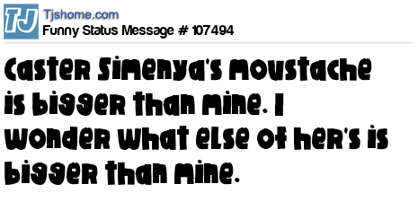 X says Caster Simenya's moustache is bigger than mine. I wonder what else of her's is bigger than mine.