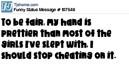 X says To be fair, my hand is prettier than most of the girls I've slept with, I should stop cheating on it.