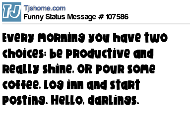 - # 149743 Nothing says, "creative genius" like posting, "Good Morning!" with a cup of coffee with a smiley in the foam.