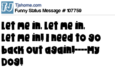 X is Let me in, Let me in, Let me in! I need to go back out again!----My Dog!