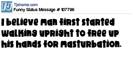 X says I believe man first started walking upright to free up his hands for masturbation.