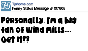 X Personally, I'm a big fan of wind mills.... Get it??