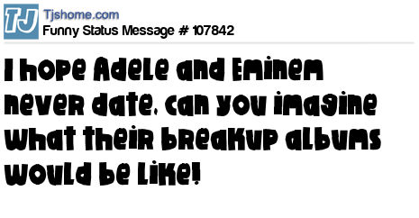 X is I hope Adele and Eminem never date, can you imagine what their breakup albums would be like!