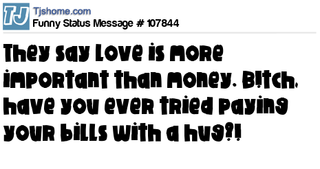 X They say love is more important than money. B!tch, have you ever tried paying your bills with a hug?!