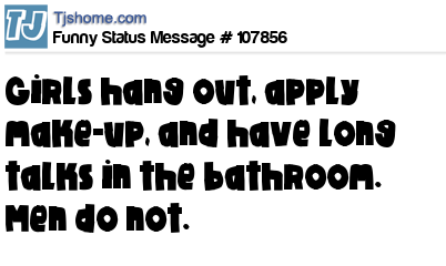 X is Girls hang out, apply make-up, and have long talks in the bathroom. Men do not.