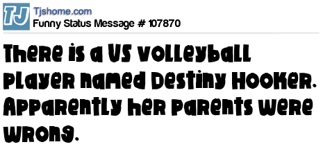 X is There is a US volleyball player named Destiny Hooker. Apparently her parents were wrong.