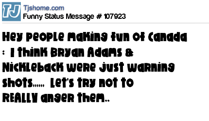 X Hey people making fun of Canada : I think Bryan Adams & Nickleback were just warning shots,,,,,, Let's try not to REALLY anger them..