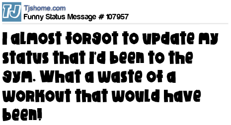X I almost forgot to update my status that I'd been to the gym. What a waste of a workout that would have been!