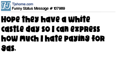 X  hope they have a white castle day so I can express how much I hate paying for gas.