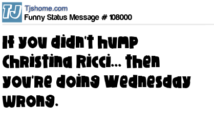 - # 111272 If you don't hump Christina Ricci today, then you're doing Wednesday wrong.