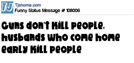 - # 162800 Guns don't kill people. Husbands that come home early do